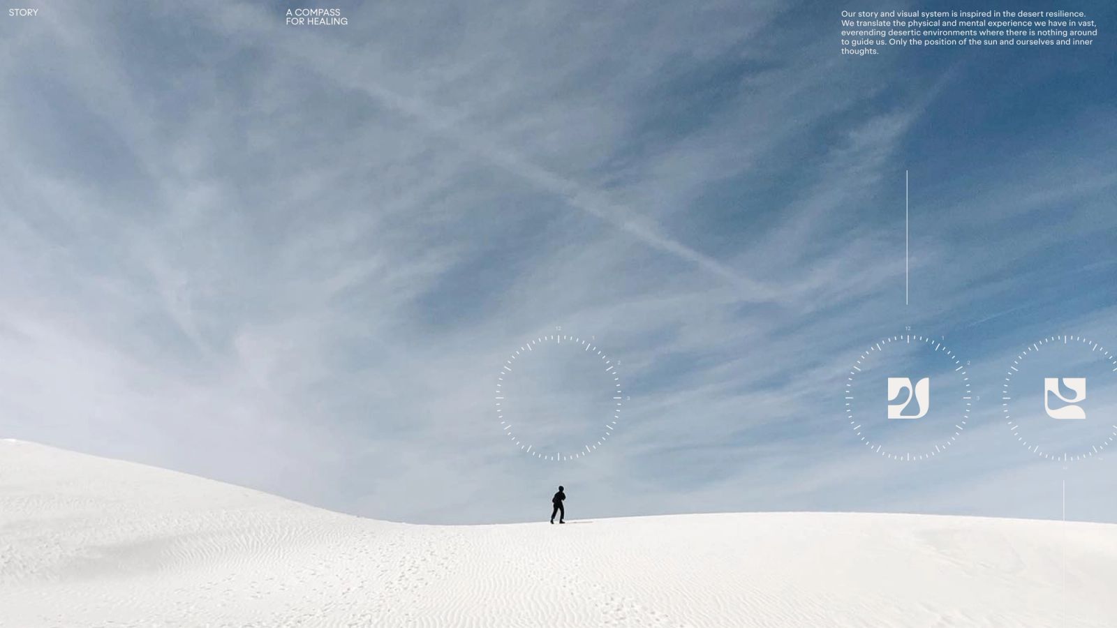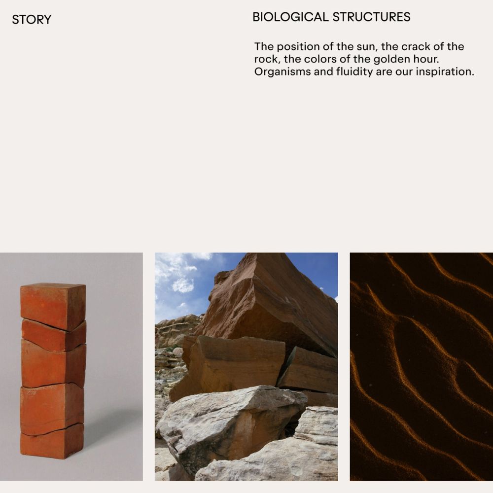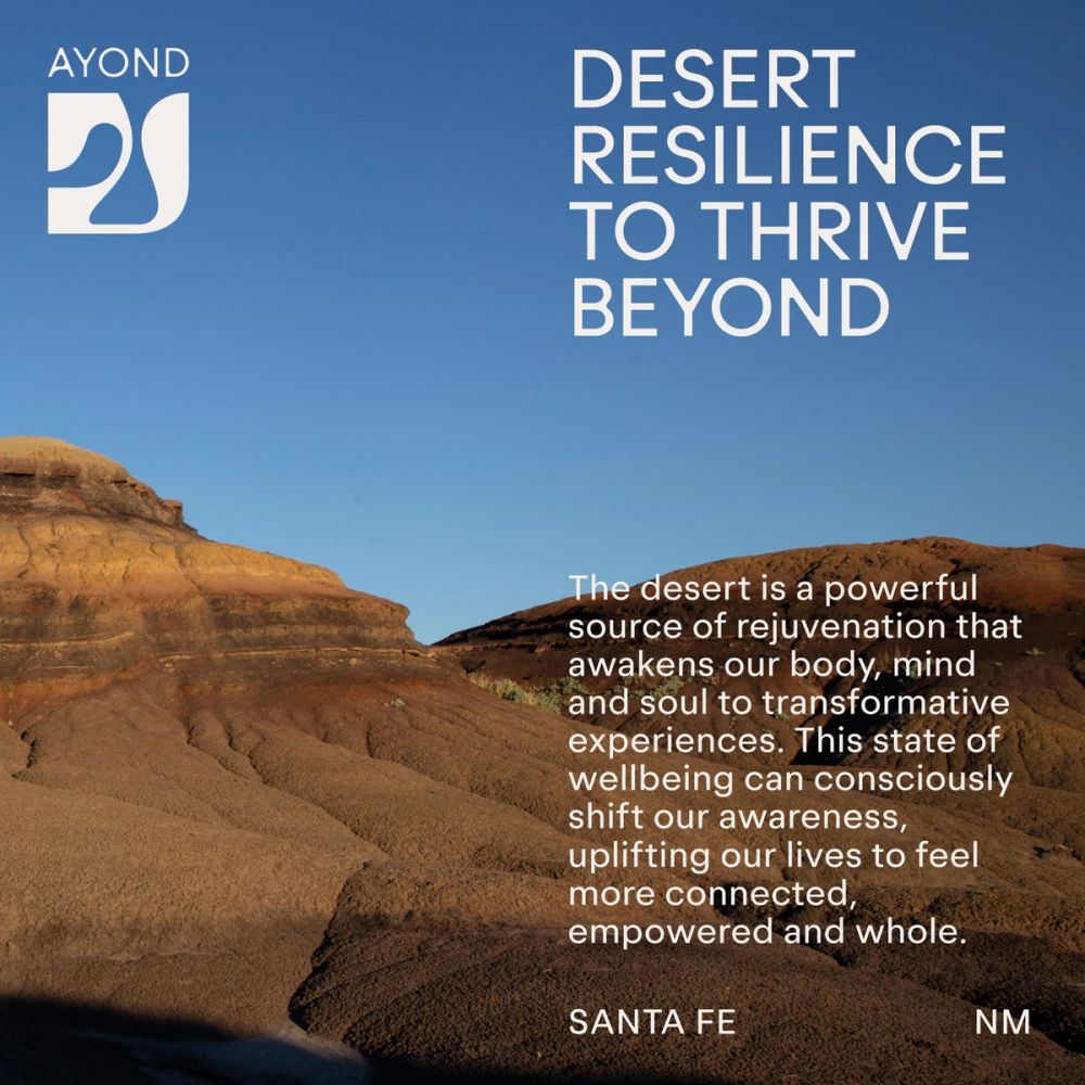 AYOND believes that the desert is a powerful source of rejuvenation that awakens our body, mind, and soul to transformative experiences. This state of well-being consciously shifts our awareness from me to us, uplifting our lives to feel more connected, empowered, and whole. AYOND's visual system is inspired by desert resilience, creating a physical and ethereal space for healing and self-discovery. We wanted to create a metaphor that could translate the physical and mental experiences we encounter in vast, neverending desertic environments. There is nothing around to guide us: only the position of the sun and our inner thoughts and nature.
